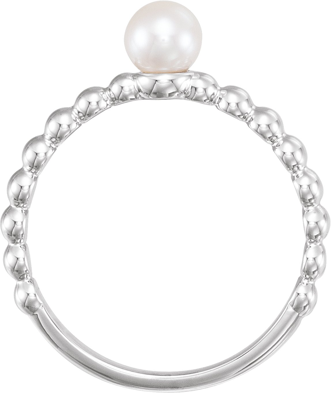 14K White 4.5 5.0 mm Freshwater Cultured Pearl Stackable Beaded Ring