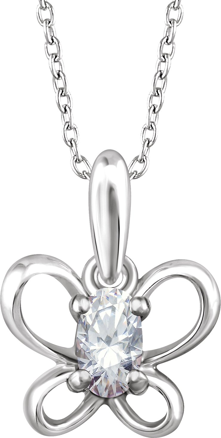 14K White 4x3 mm Oval April Youth Butterfly Birthstone 15 inch Necklace