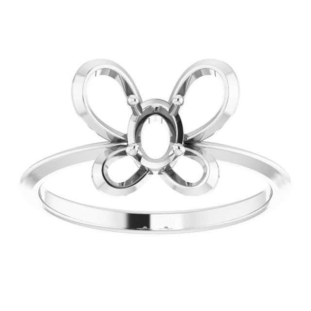 14K White 4x3 mm Oval April Youth Butterfly Birthstone Ring