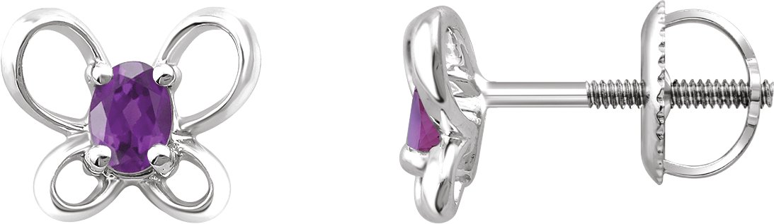 14K White 4x3 mm Oval February Youth Butterfly Birthstone Earrings
