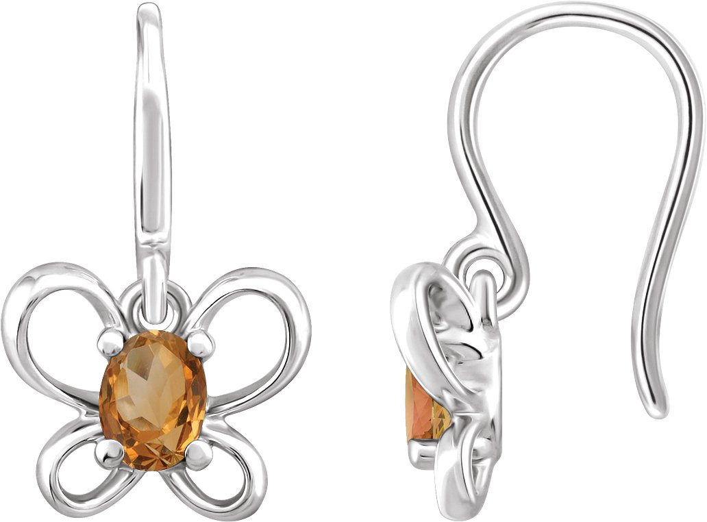 14K White 4x3 mm Oval November Youth Butterfly Birthstone Earrings