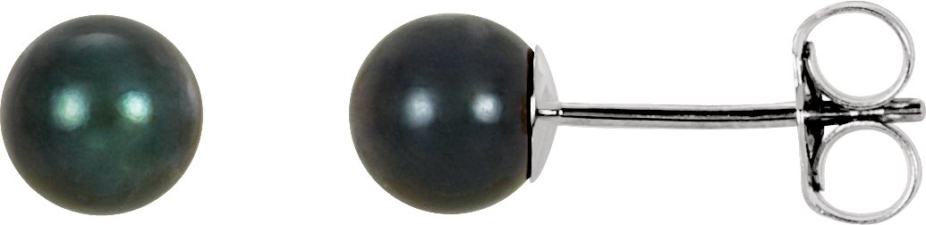 14K White 5 mm Black Akoya Cultured Pearl Earrings