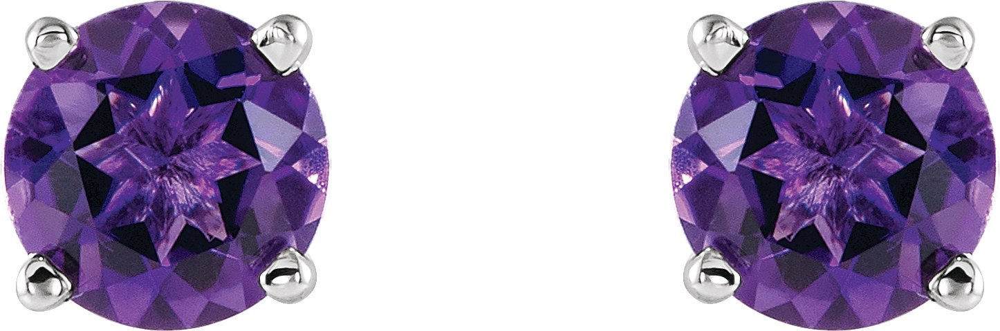 14K White 5 mm Round Amethyst Earrings