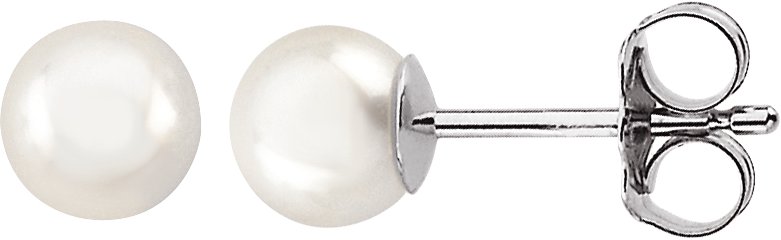 14K White 5 mm White Akoya Cultured Pearl Earrings