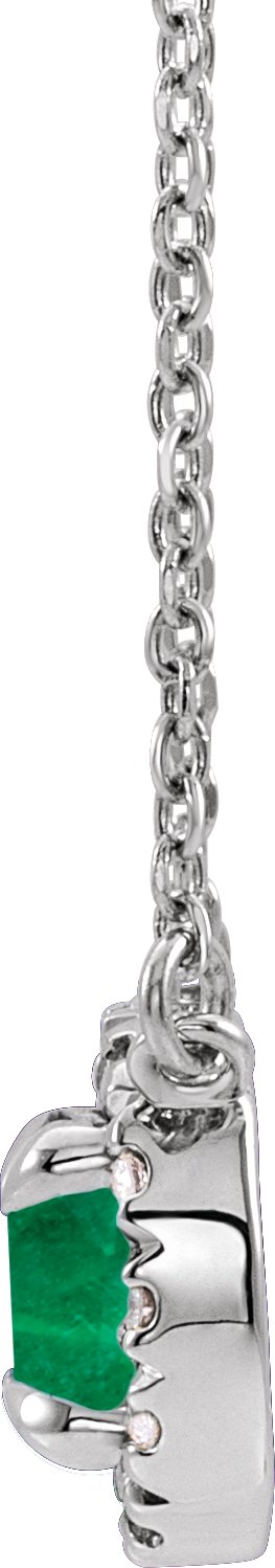 14K White 5.5 mm Round Emerald & 1/8 CTW Diamond 16 inch Necklace