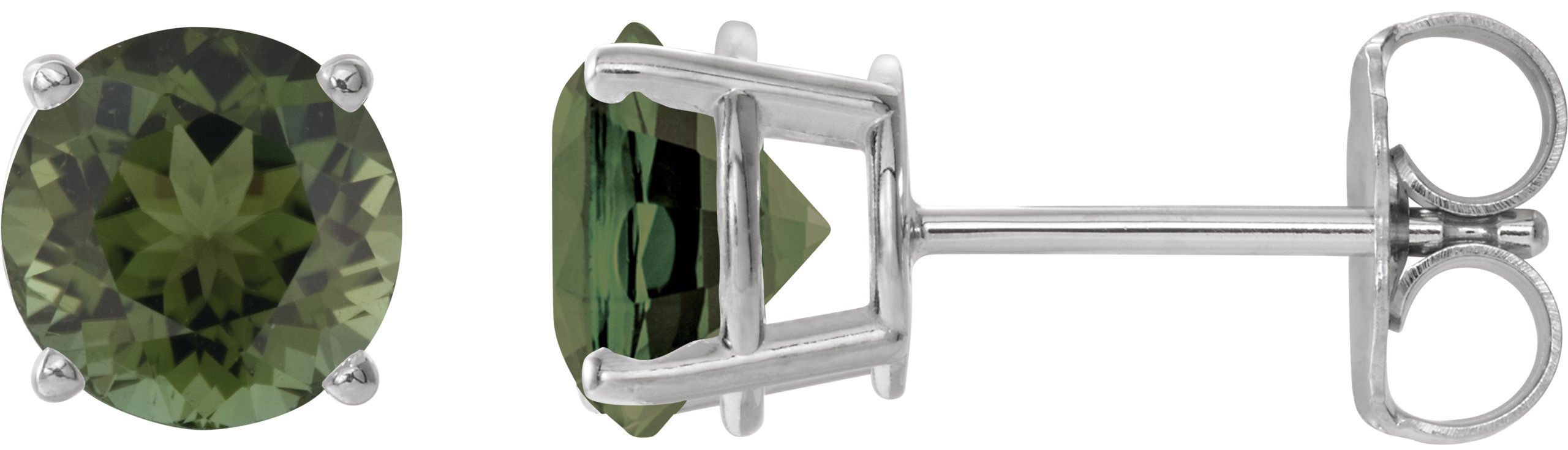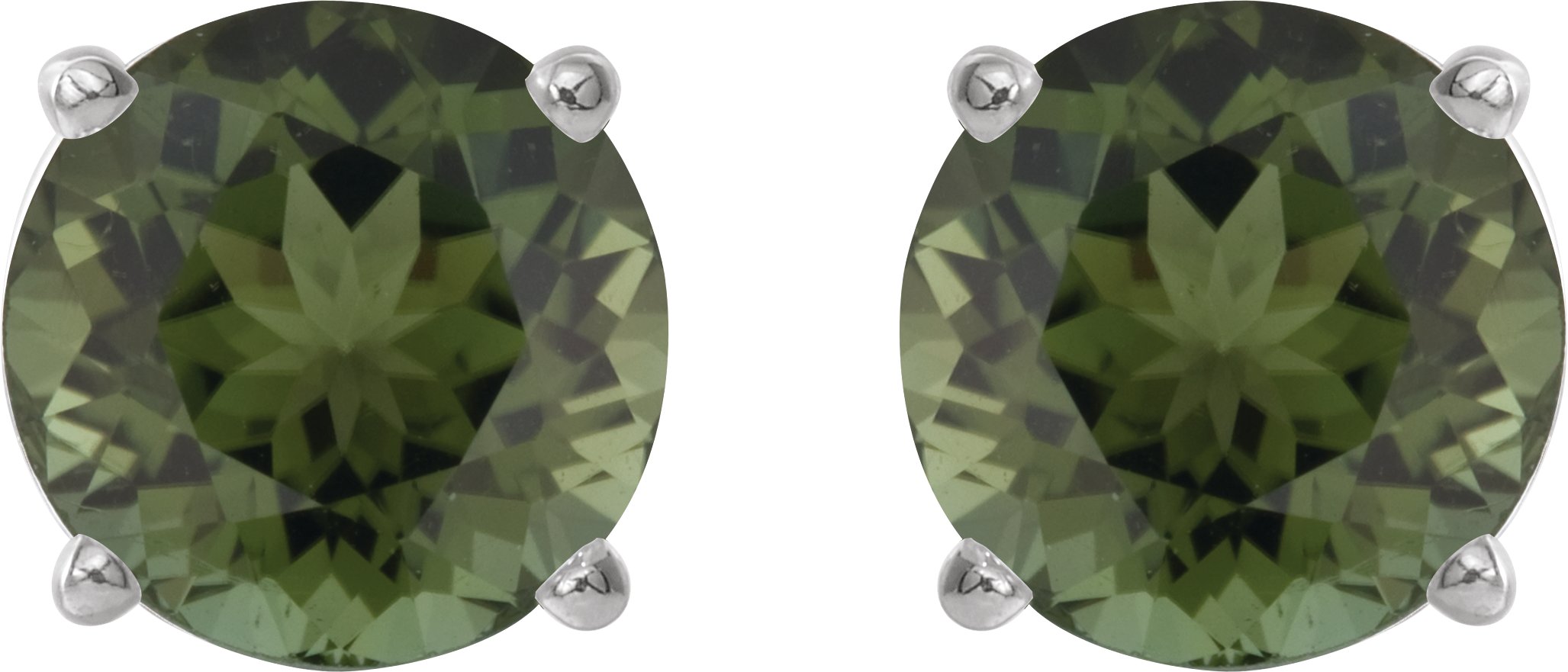 14K White 6 mm Natural Green Tourmaline Stud Earrings