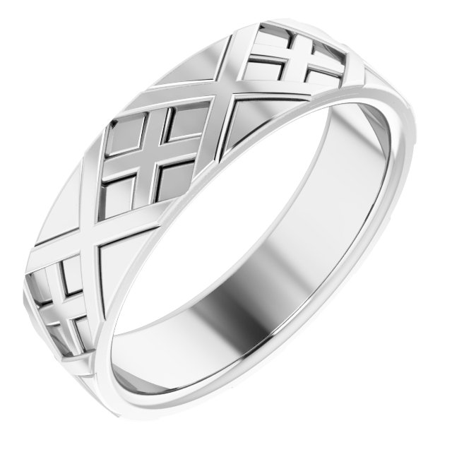 14K White 6.4 mm X Pattern Design Band Size 11.5 Ref 12750650