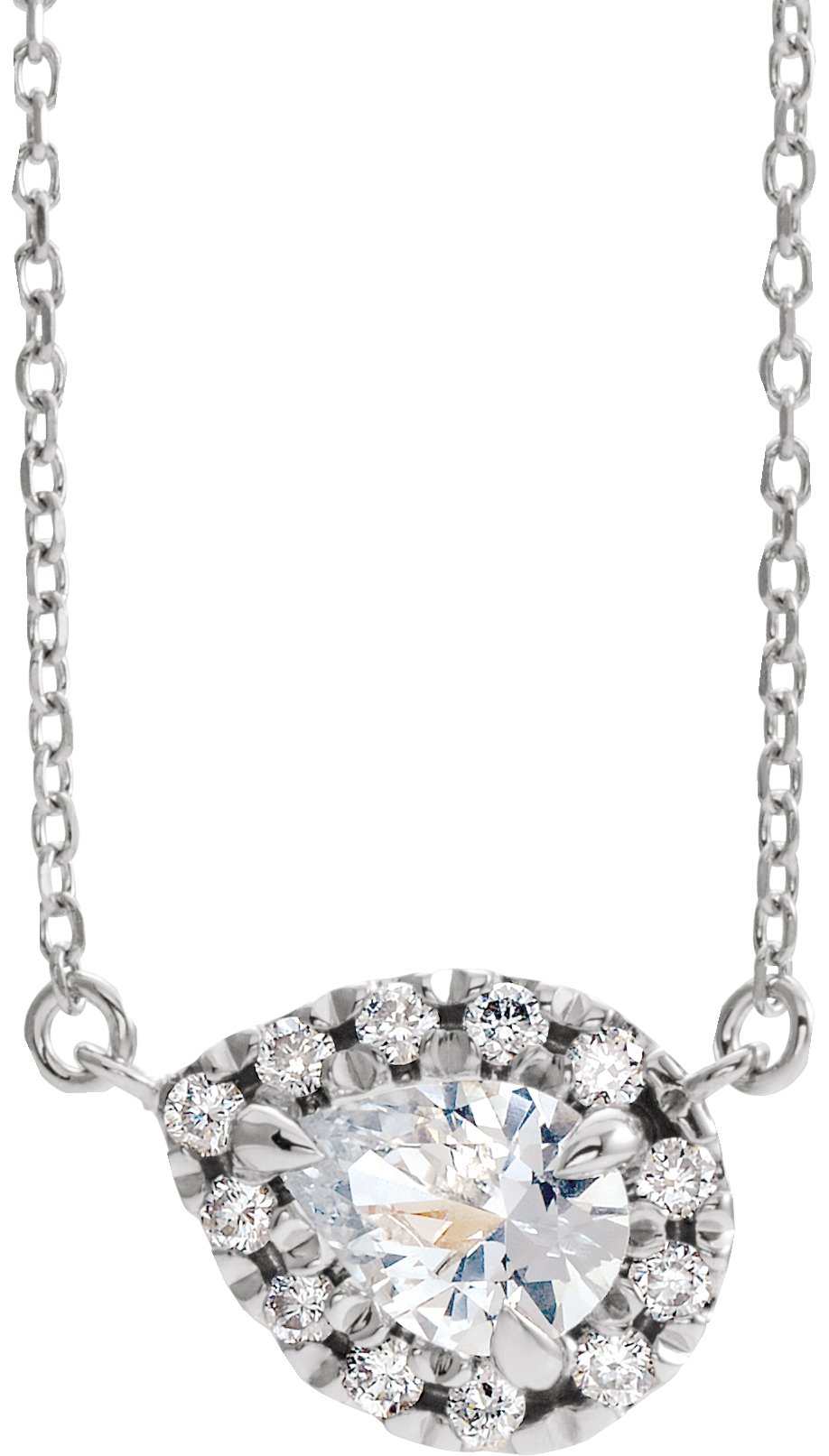 14K White 6x4 mm Pear White Sapphire & 1/6 CTW Diamond 16" Necklace Ref. 16213207
