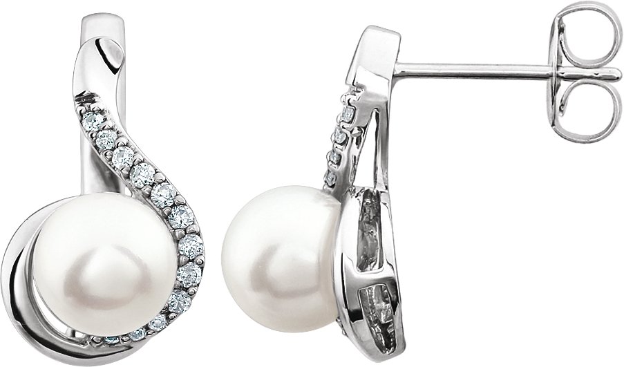 14K White 7 7.5 mm Freshwater Pearl & 1/5 CTW Diamond Earrings