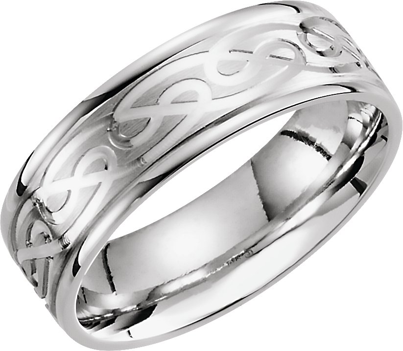 14K White 7 mm Celtic Inspired Grooved Band Size 9