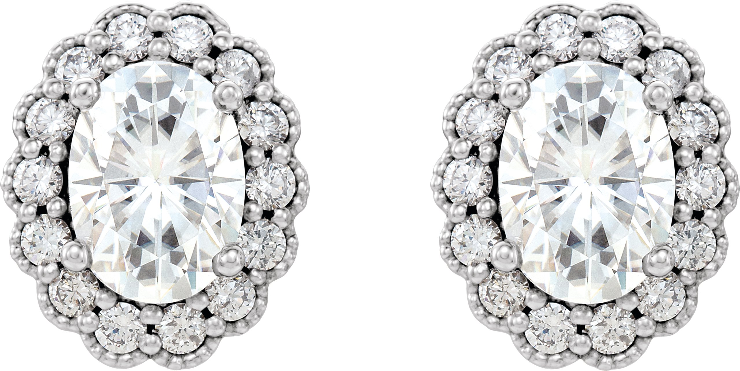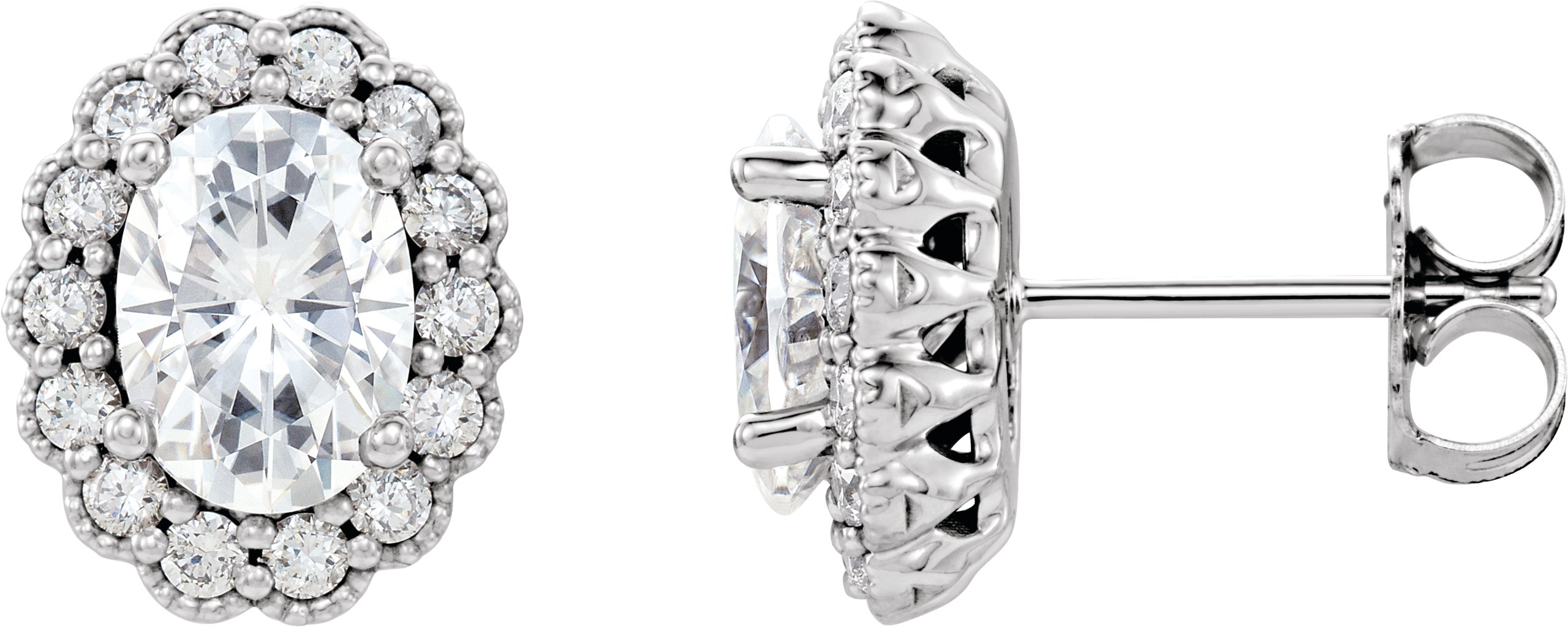 14K White 7x5 Oval Forever One™ Moissanite & 3/8 CTW Diamond Earrings