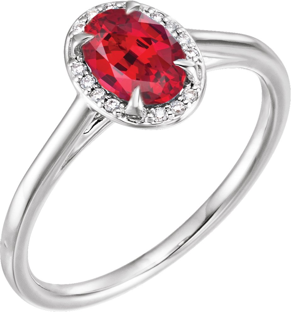 14K White 7x5 mm Oval Chatham Lab Created Ruby & .04 CTW Diamond Ring