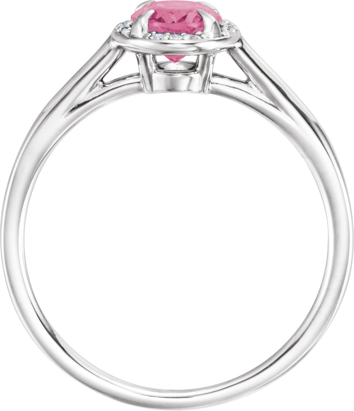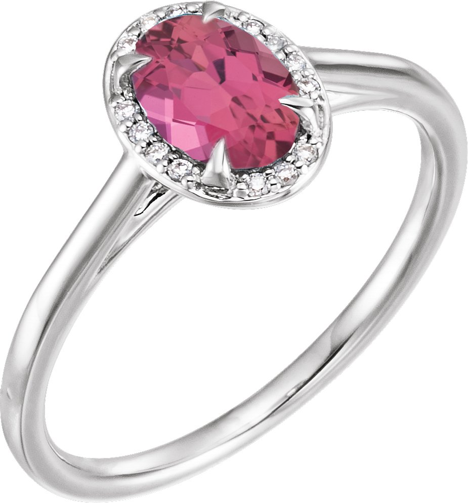 14K White 7x5 mm Oval Pink Tourmaline & .04 CTW Diamond Ring
