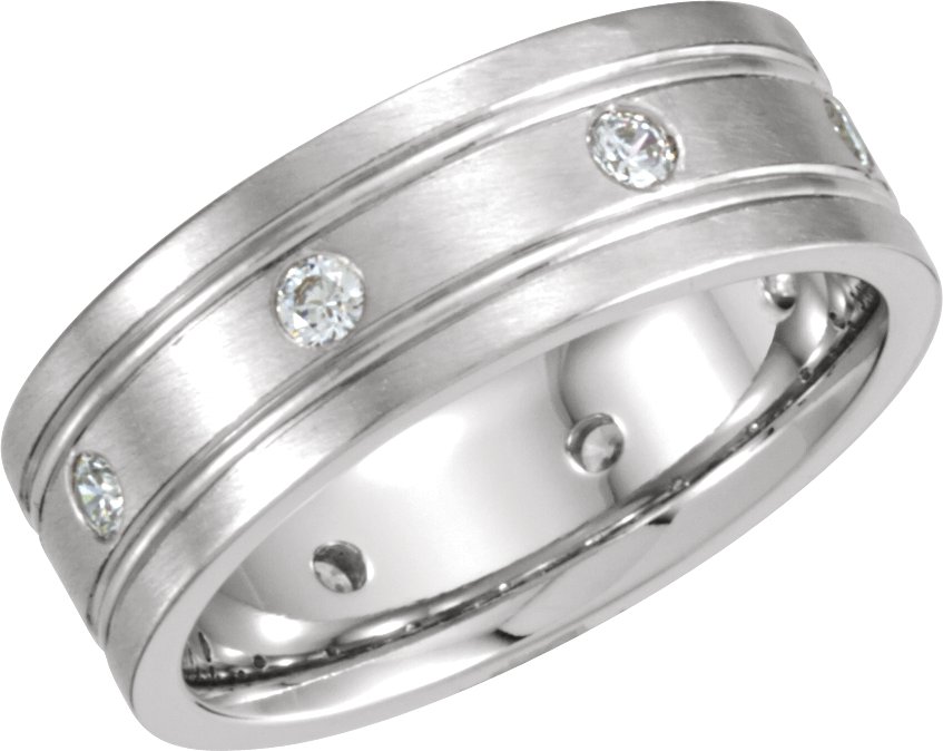 14K White 8 mm .5 CTW Dimaond Double Grooved Band Size 10 Ref 13758094