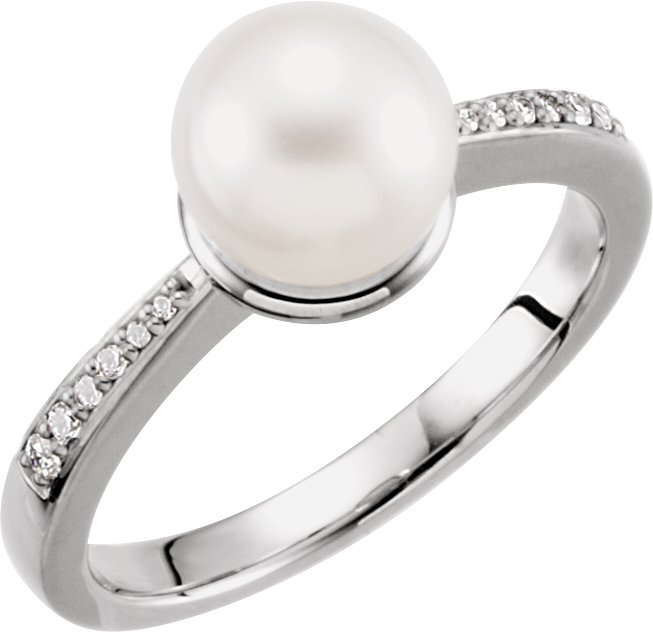 14K White 8 mm Pearl & .07 CTW Diamond Ring