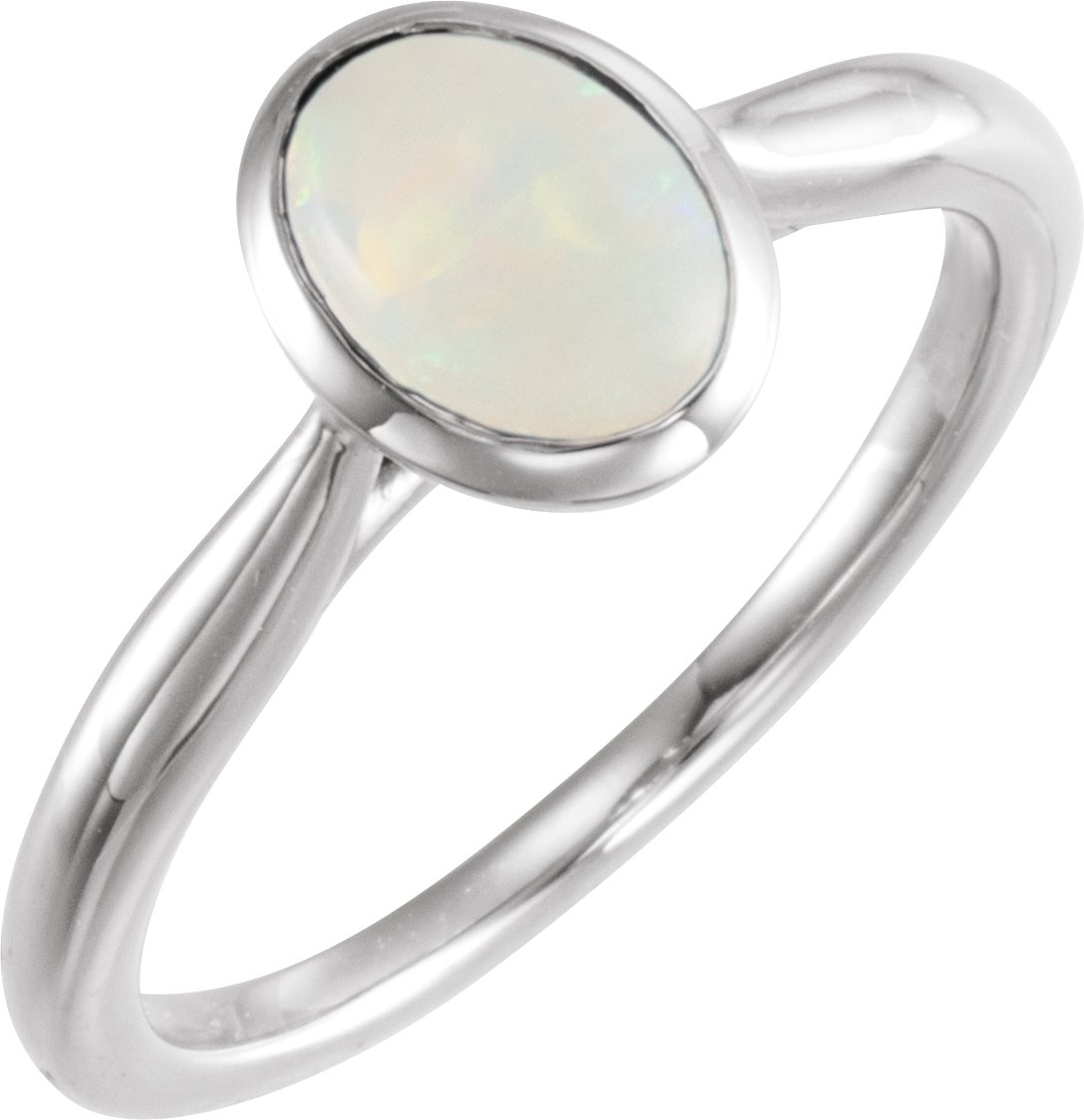 14K White 8x6 mm Oval Cabochon Ethiopian Opal Ring