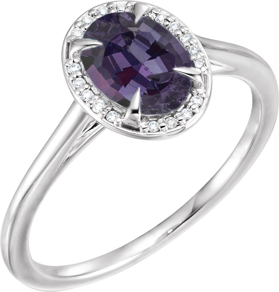 14K White 8x6 mm Oval Chatham Lab Created Alexandrite & .06 CTW Diamond Ring
