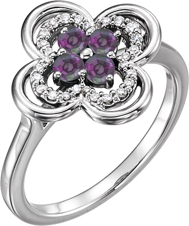 Description: Genuine Alexandrite And 1/10 CTW Dia Clover Ring