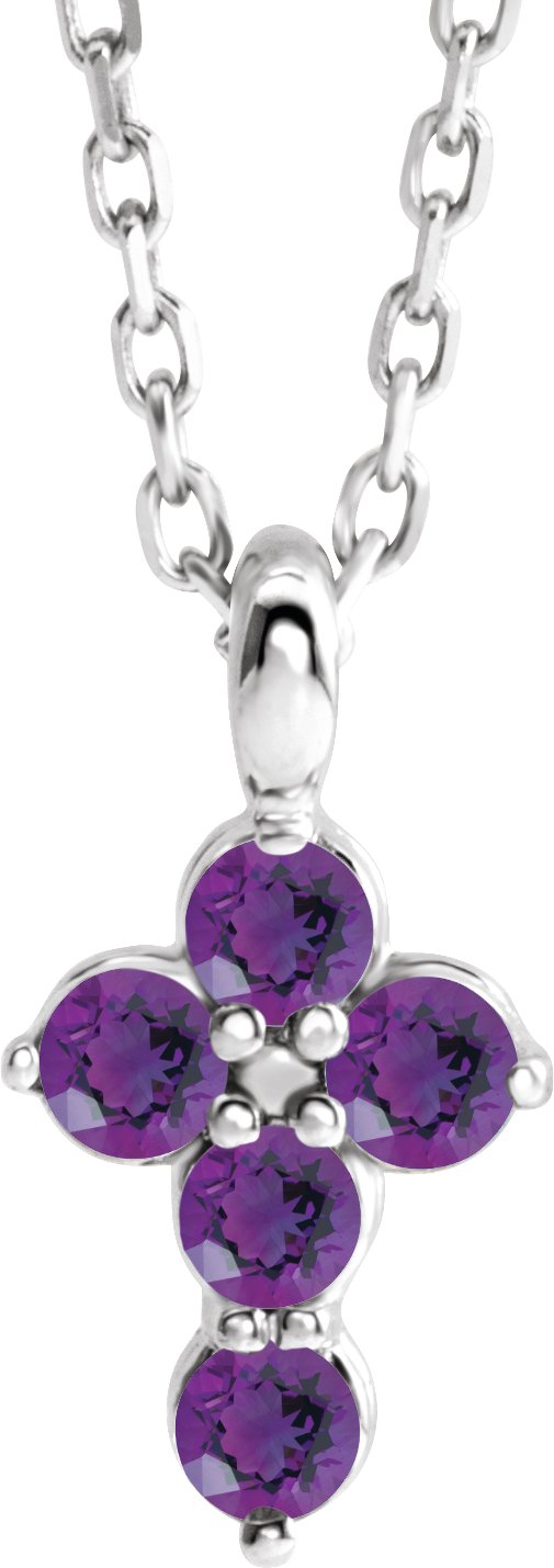 14K White Amethyst Cross 16 18" Necklace Ref. 16238337