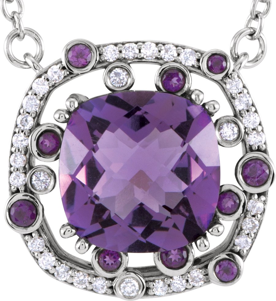 14K White Amethyst and .17 CTW Diamond 16 inch Necklace