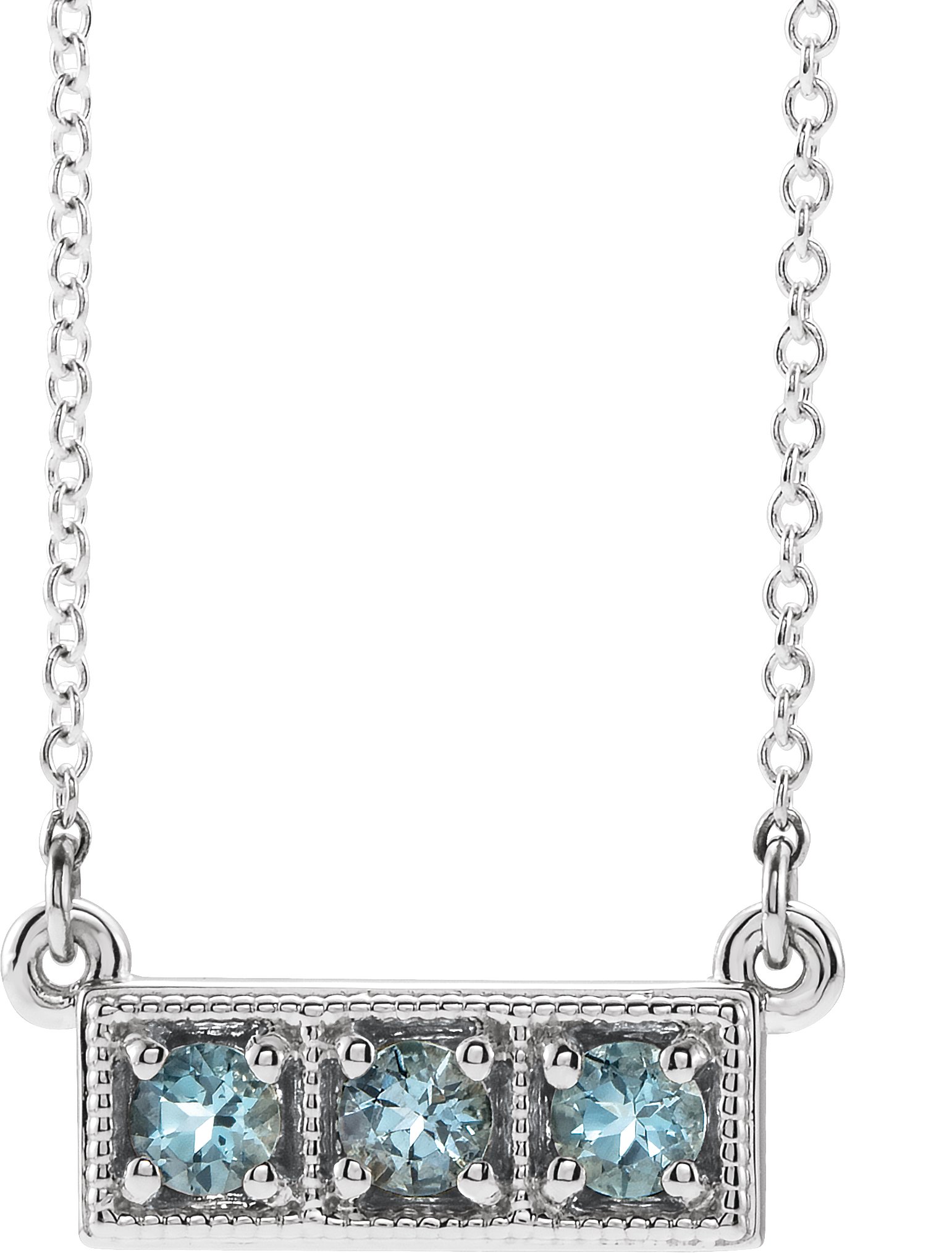 Description: Genuine Aquamarine Threes Stone Bar Necklace