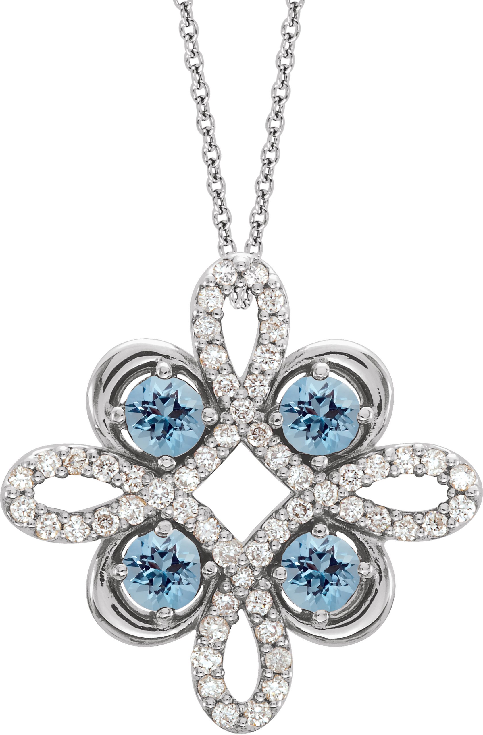 14K White Aquamarine and .17 CTW Diamond Clover 18 inch Necklace