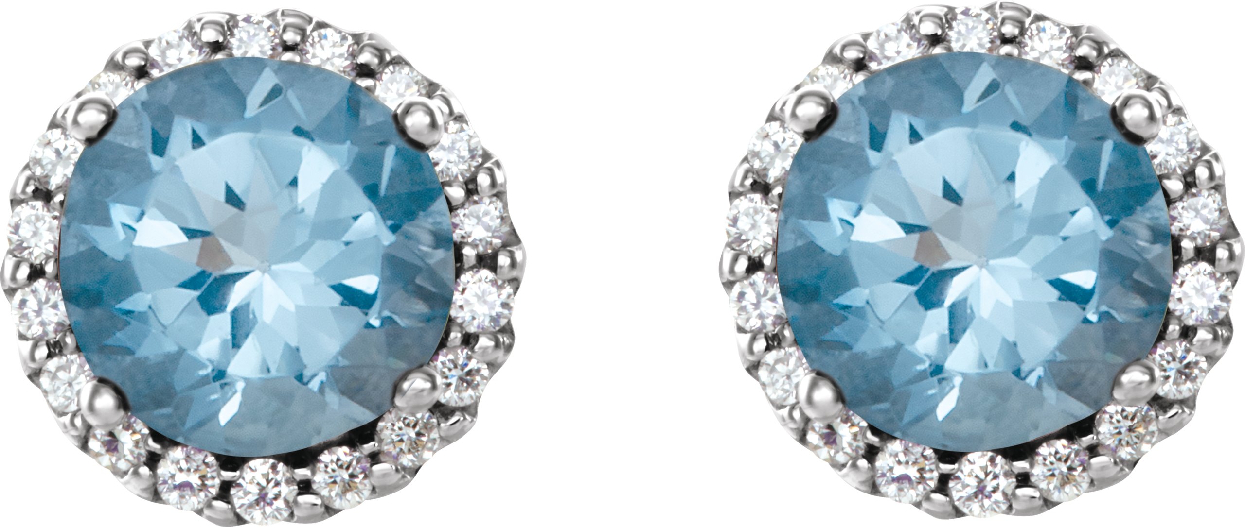 14K White Aquamarine and .20 CTW Diamond Earrings