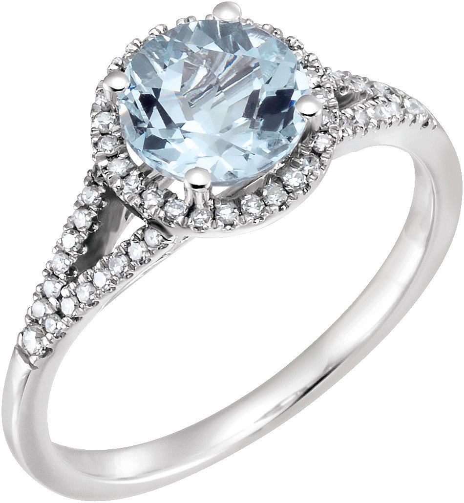 14K White Aquamarine & 1/5 CTW Diamond Ring