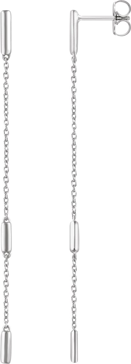 14K White Bar Chain Earrings