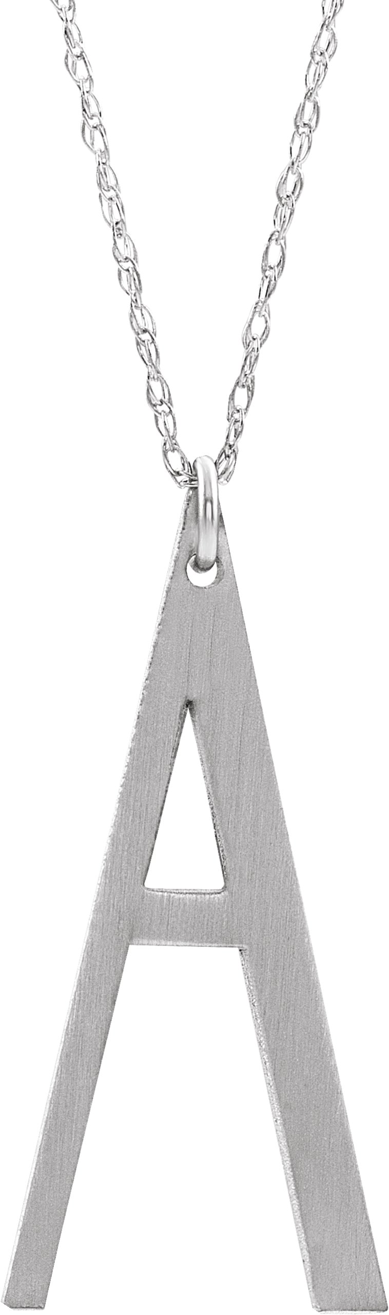 14K White Block Initial A 16 18" Necklace with Brush Finish Ref. 16047358