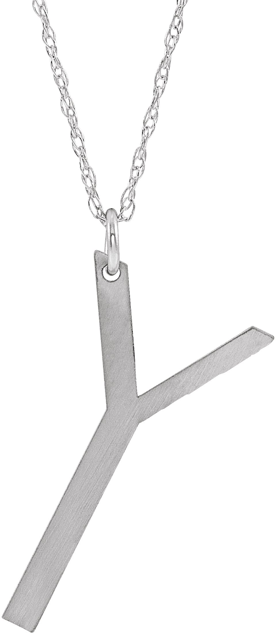 14K White Block Initial Y 16 18" Necklace with Brush Finish Ref. 16047226