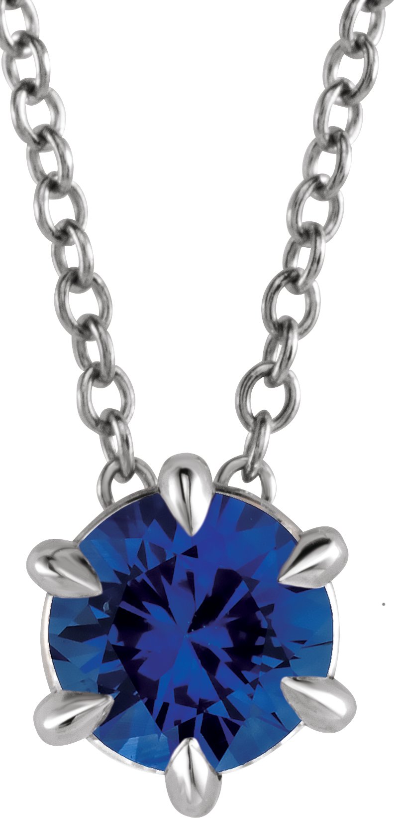 14K White Blue Sapphire Solitaire 16 18 inch Necklace