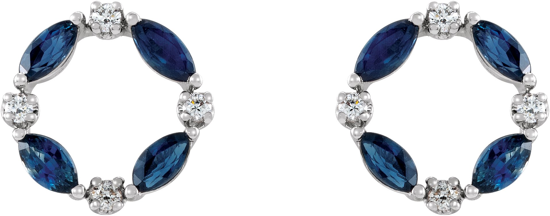 14K White Blue Sapphire and .1 CTW Diamond Circle Earrings
