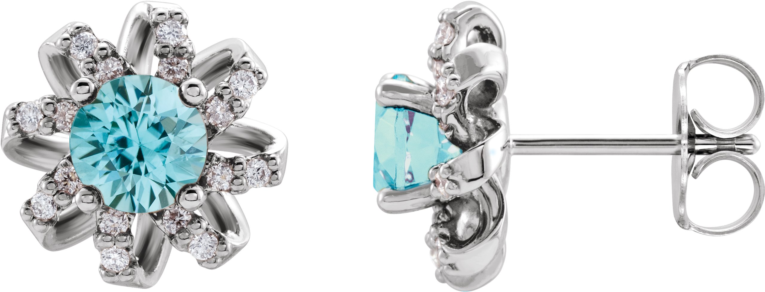 Description: Blue Zircon Earrings With Diamond Accents