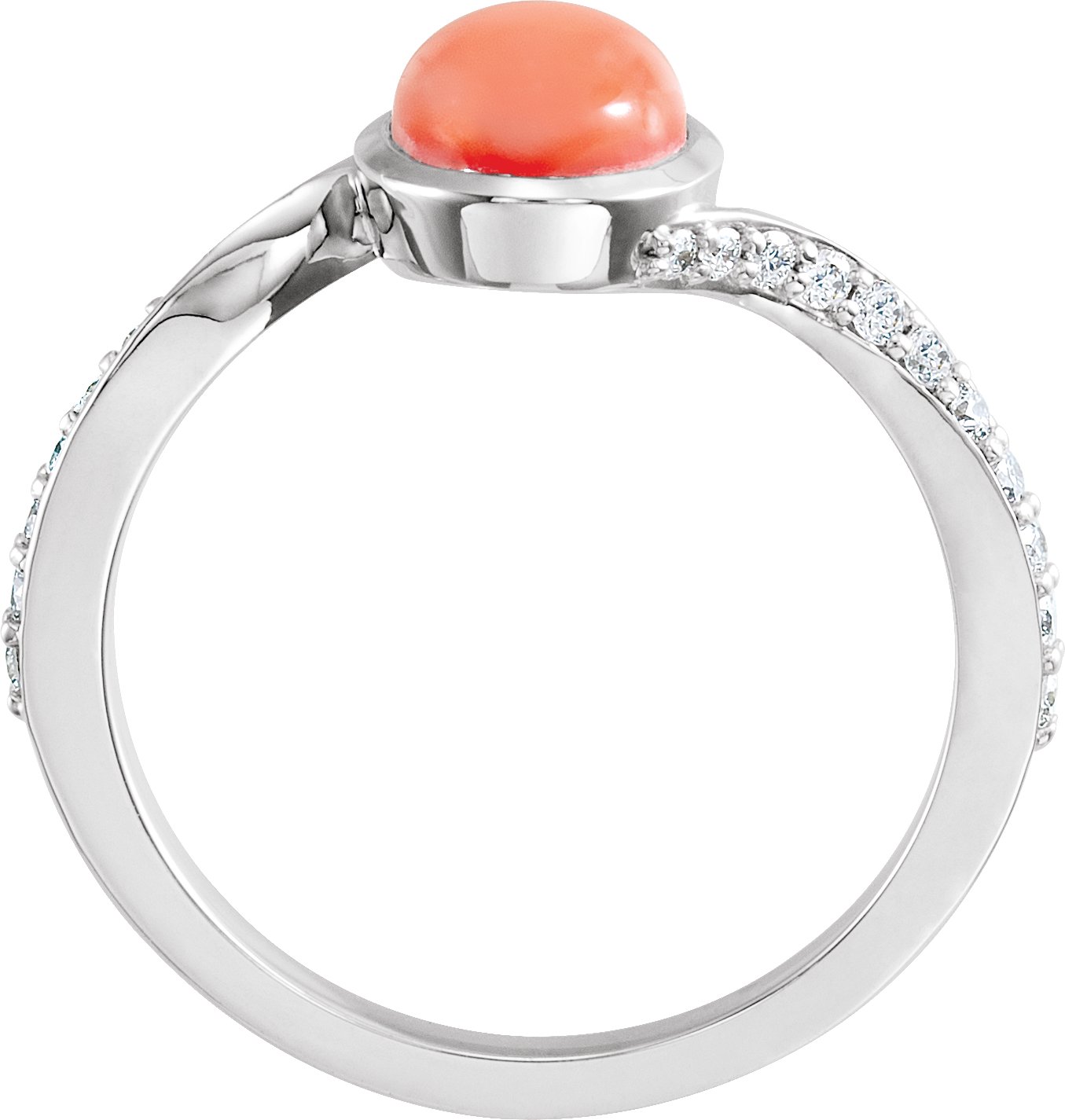 14K White Cabochon Pink Coral & 1/5 CTW Diamond Ring