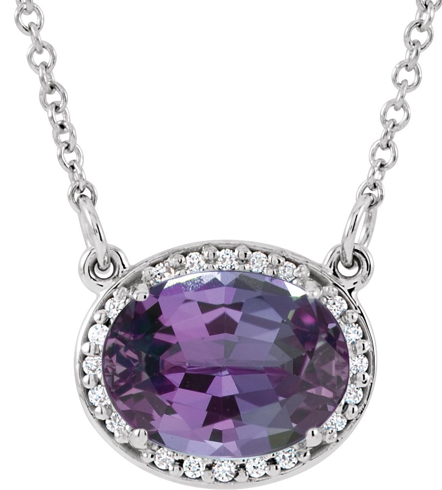 14K White Chatham Created Alexandrite & .05 CTW Diamond 16.5 inch Necklace