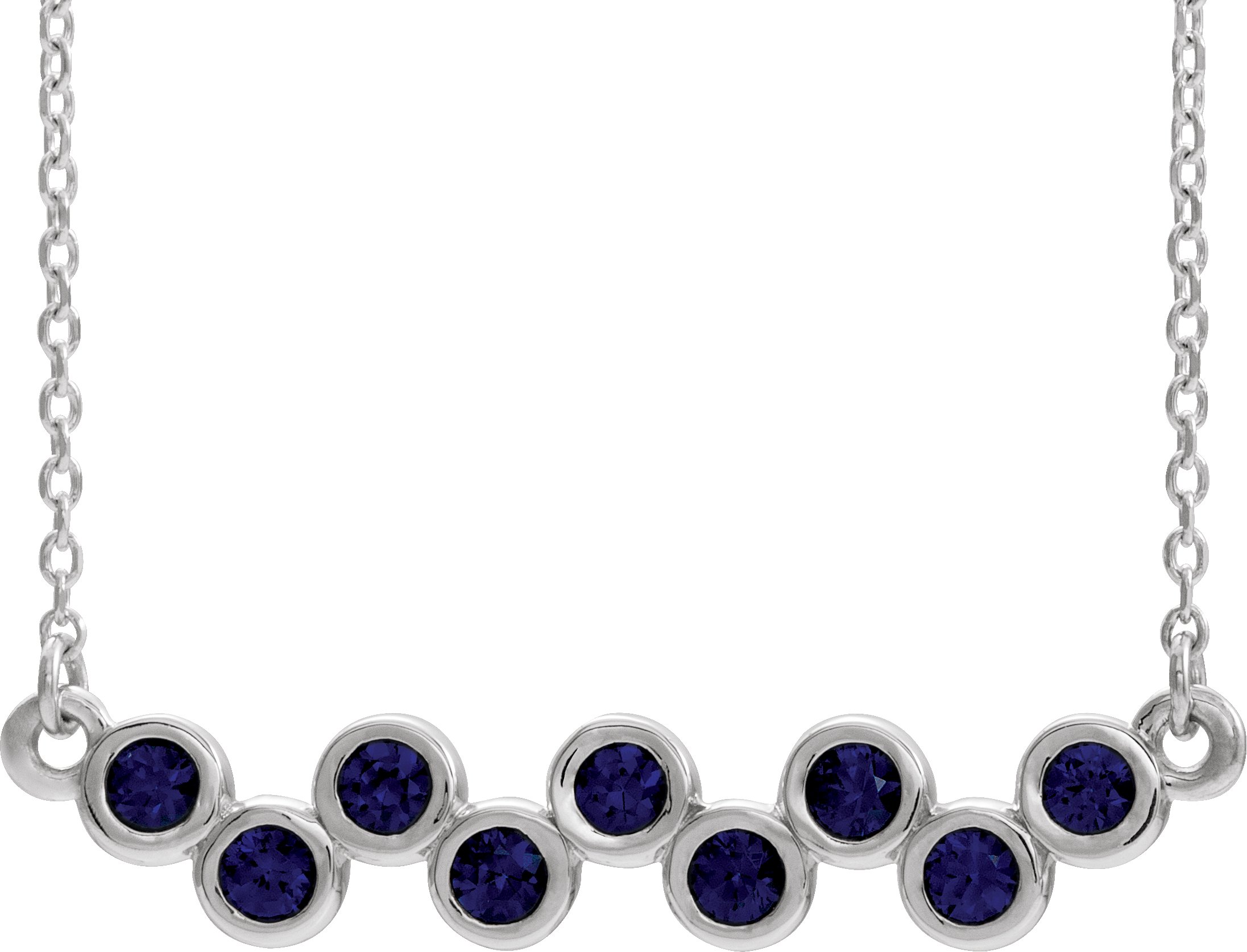 14K White Chatham Created Blue Sapphire Bezel Set Bar 16 18" Necklace Ref. 14200016