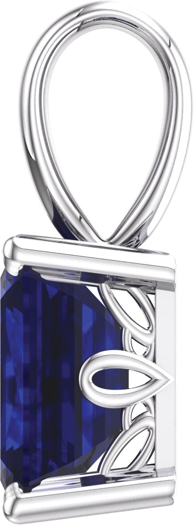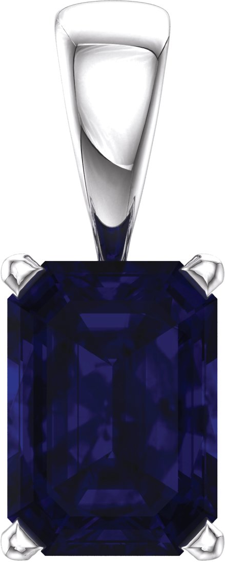 14K White Chatham Created Blue Sapphire Pendant
