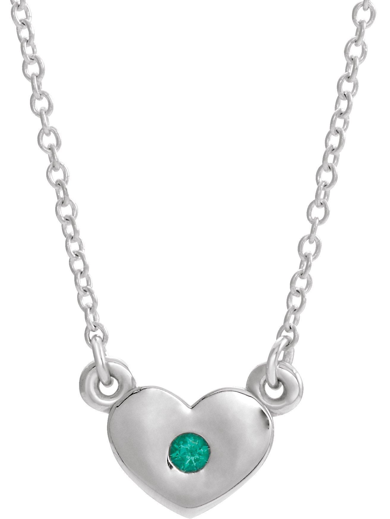 14K White Chatham Created Emerald Heart 16 inch Necklace