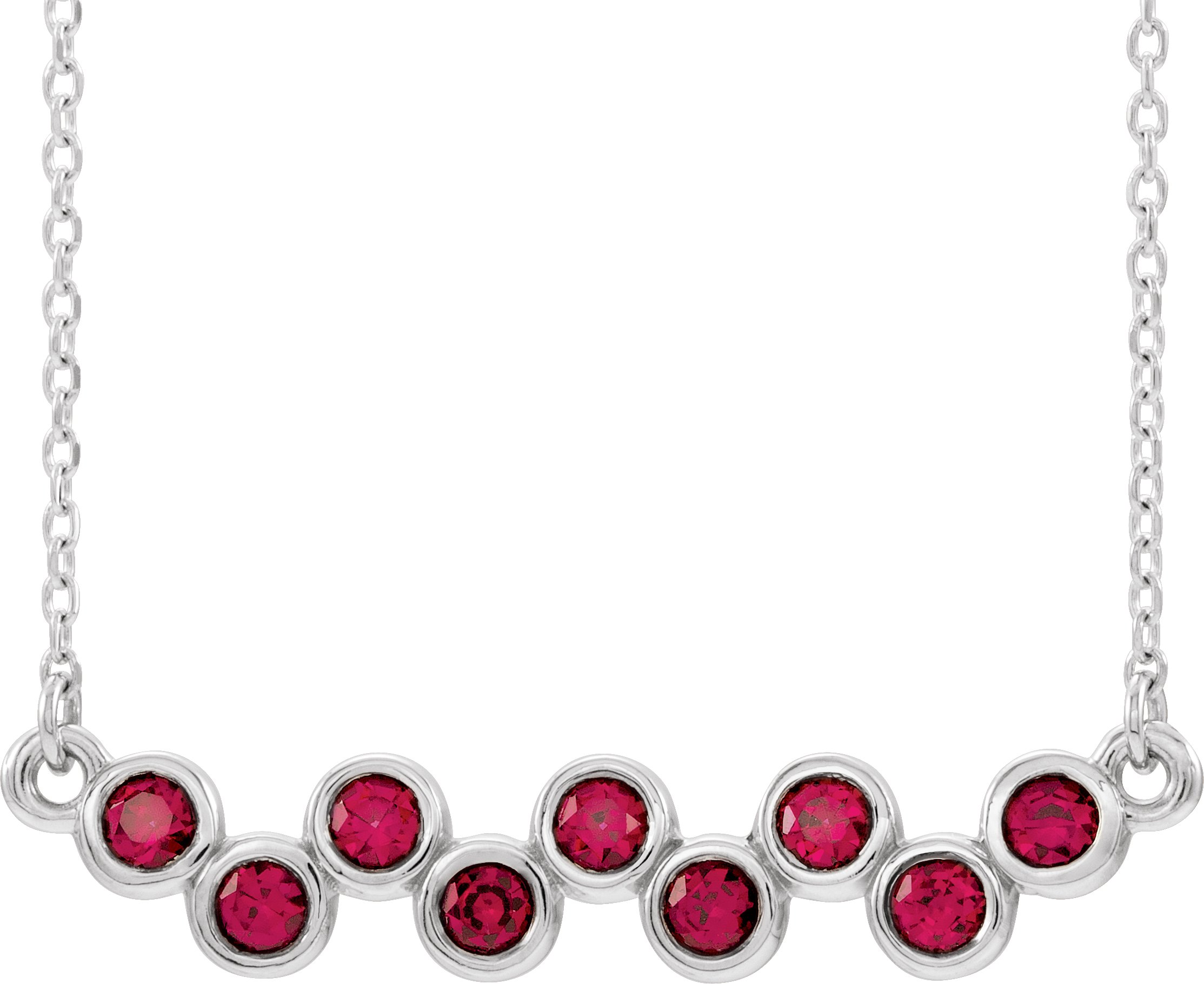 14K White Chatham Created Ruby Bezel Set Bar 16 18" Necklace Ref. 14200001