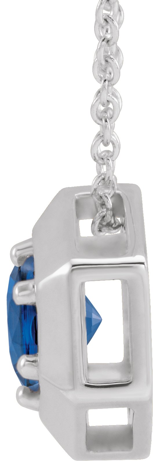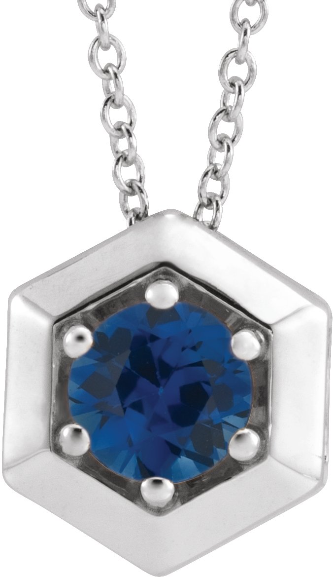 14K White Chatham Lab Created Blue Sapphire Geometric 16 18" Necklace Ref. 16628894