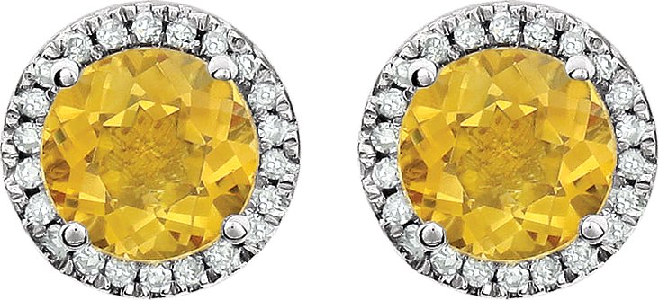 14K White Citrine & 1/8 CTW Diamond Earrings