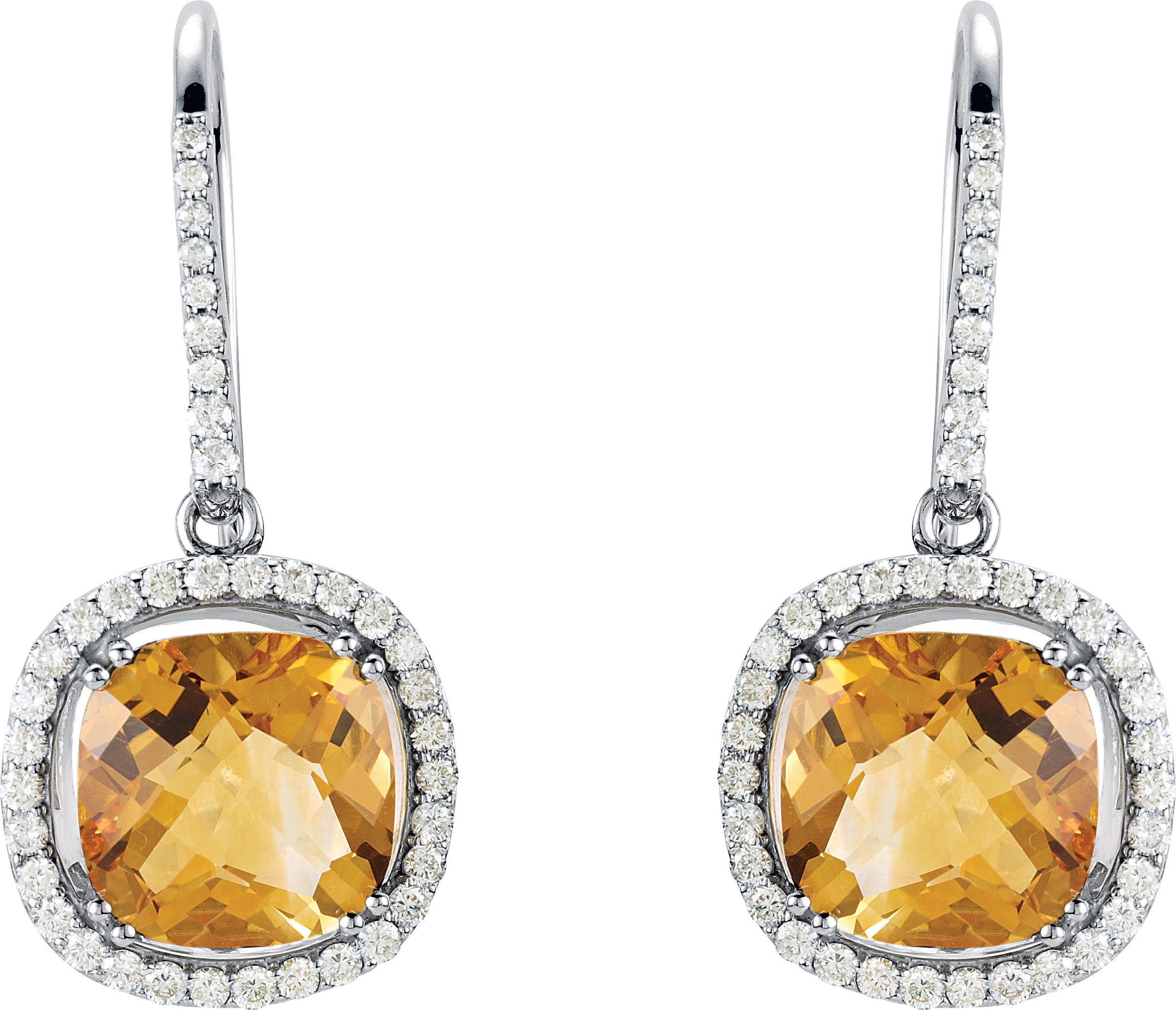 14K White Citrine and .75 CTW Diamond Earrings