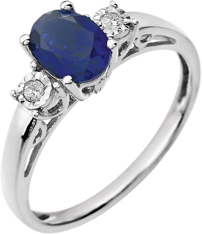 Description: Created Blue Sapphire And .04Ctw Diamond Ring