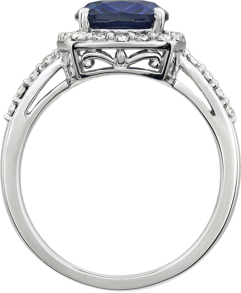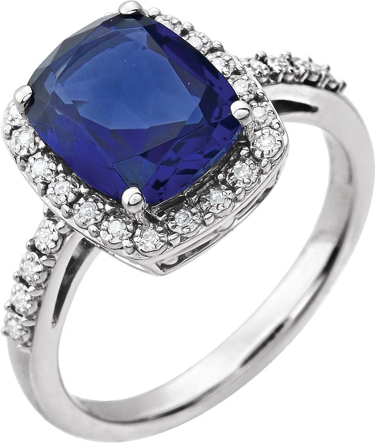 14K White Created Blue Sapphire & .07 CTW Diamond Ring