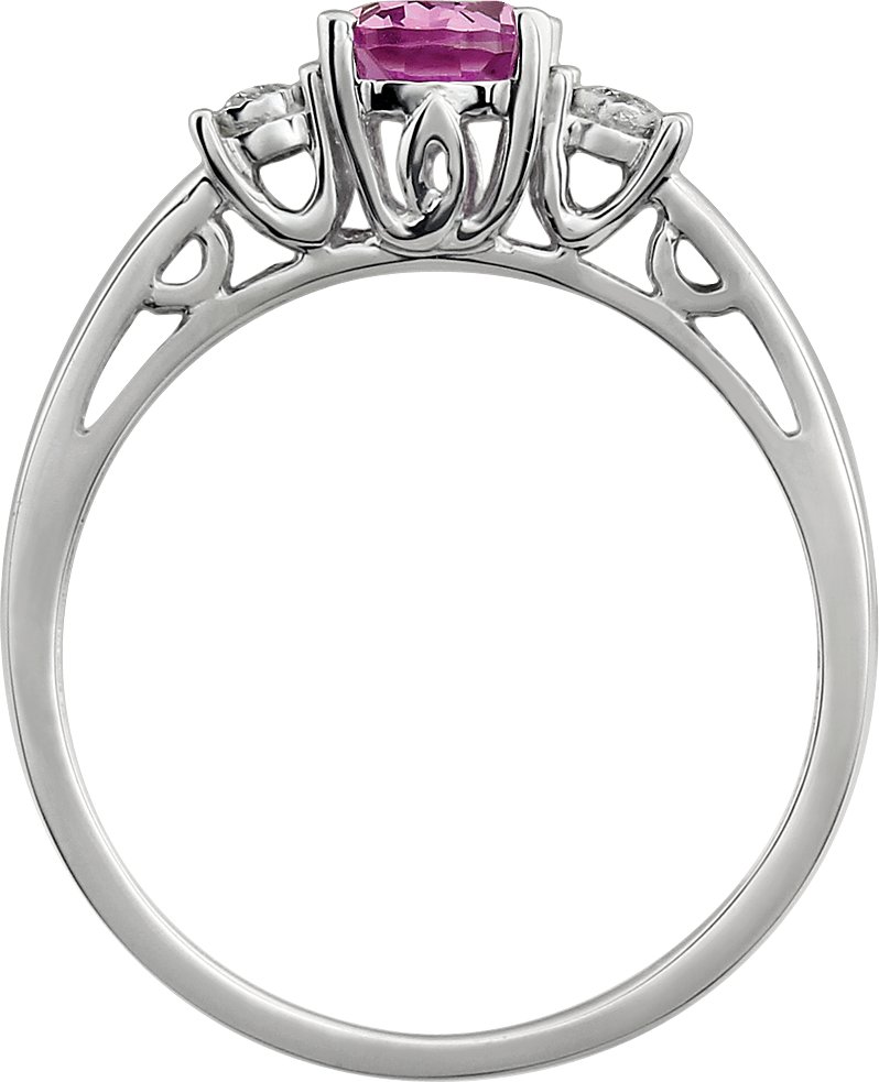14K White Created Pink Sapphire & .04 CTW Diamond Ring