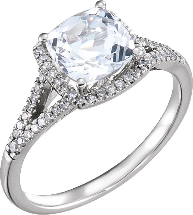 14K White Created White Sapphire & 1/5 CTW Diamond Ring
