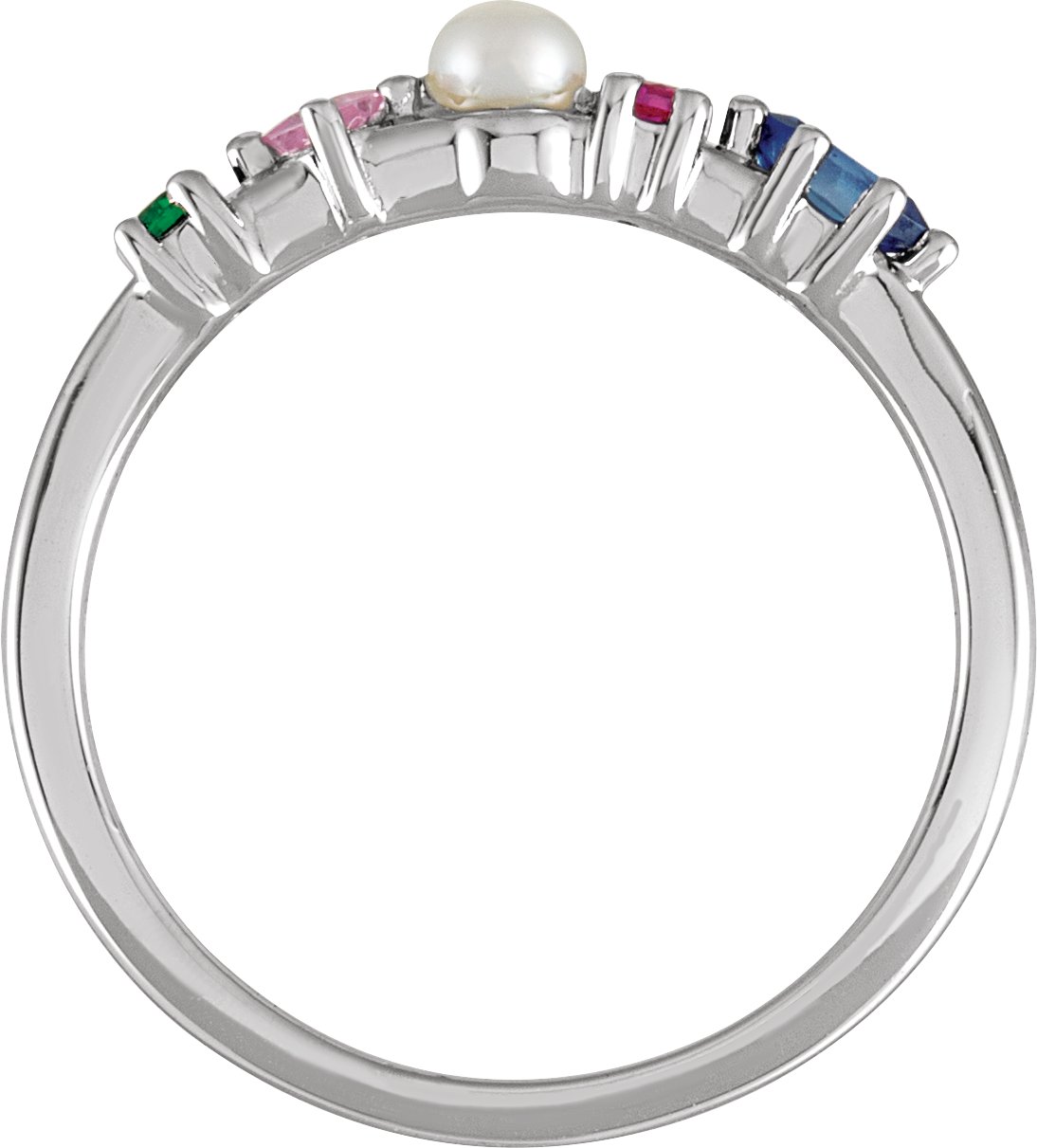 14K White Cultured Freshwater Pearl and Natural Multi Gemstone Ring Ref 19346007