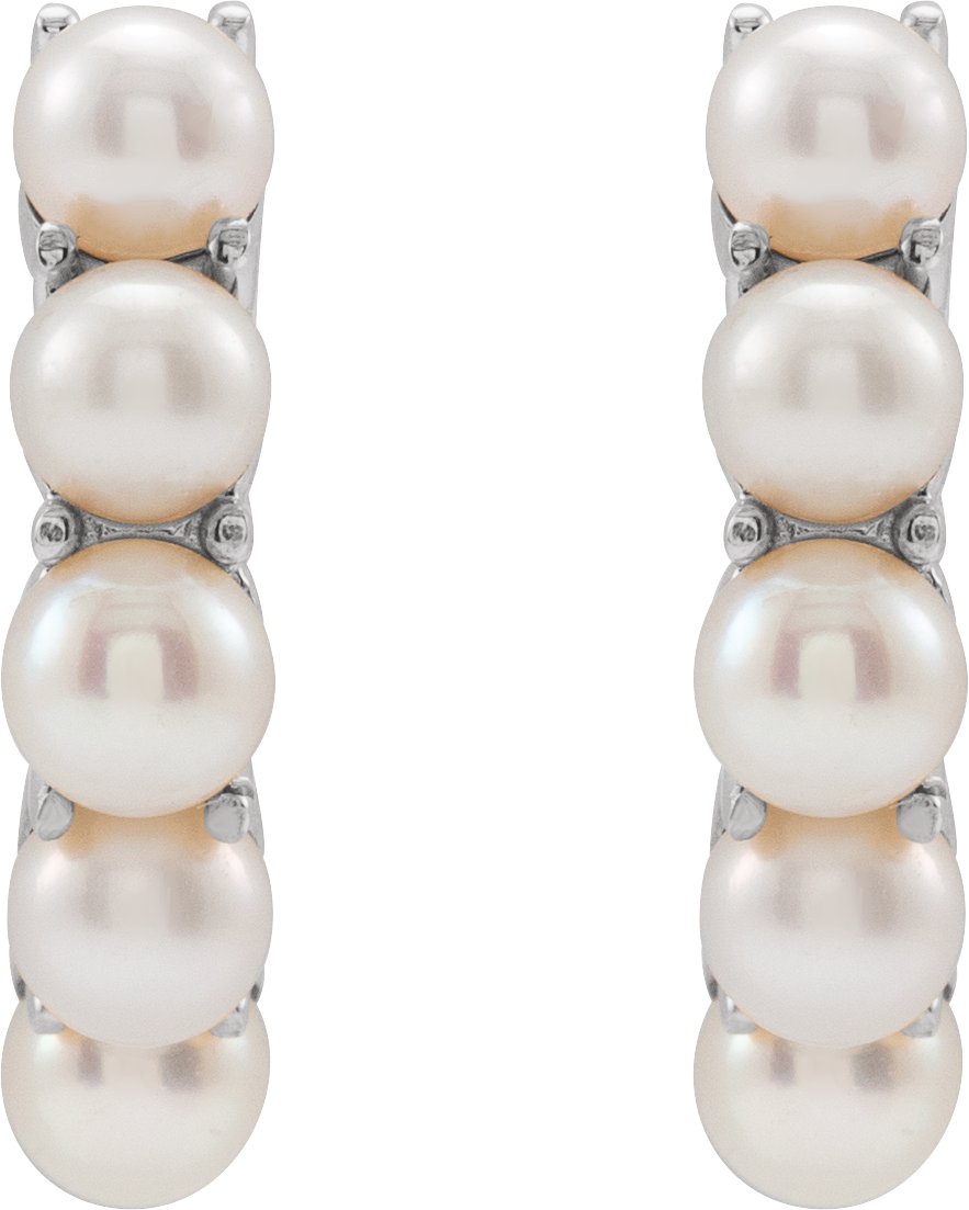 Description: Cultured White Freshwater Pearl Hoop Earrings