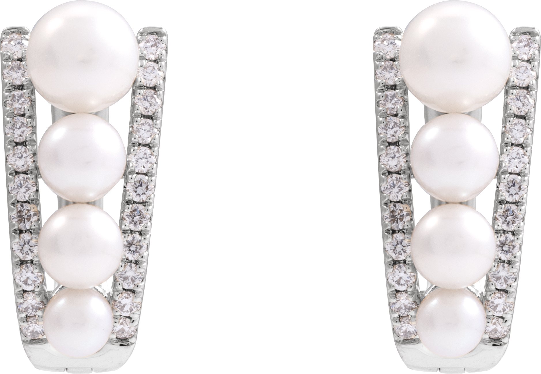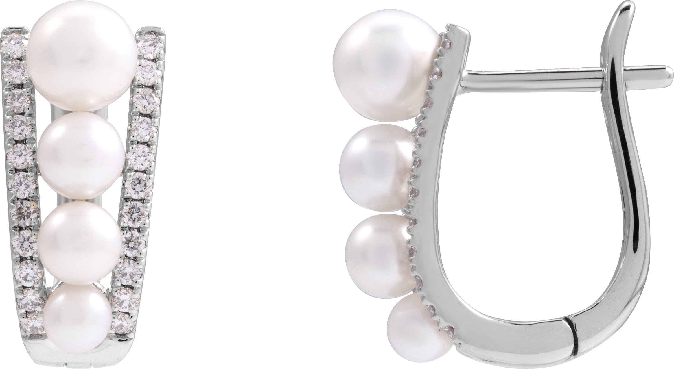 14K White Cultured White Freshwater Pearl & 1/4 CTW Natural Diamond Hoop Earrings